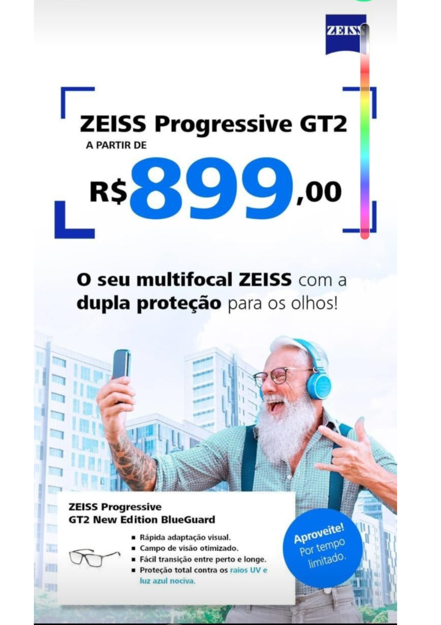 Aqui temos Lente Multifocal Zeiss com dupla proteção para seus olhos